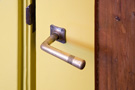 Donkergeel, enigszins ‘vuil’, zijdemat (trappenhuis, keuken, kolenberging, deuren en deurposten in hal en vestiaire, binnenzijde buitendeuren)