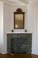 In de woonkamer bevindt zich een schouw van een kolenhaard. De schouw is gemetseld uit een baksteen met wisselend groen patina of groenglazuur. De schouw heeft een stookvloer uit zwarte 9 x 9 cm hardgebakken tegels en een dikke houten dekplaat van 5 tot 5,5 cm. Dit model schouw is ook in de andere woningen van van Loghem terug te vinden, o.a. in Tuinwijk-Noord. Van Loghem wilde met zijn keuze voor de kleur groen verwijzen naar de oorsprong van de fossiele brandstof steenkool. Steenkool was immers ooit (groene) plant, en ook via het verbranden van de steenkool in de haard werd op deze manier een relatie gelegd met de oorsprong, het groen van de natuur.