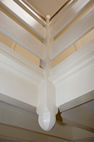 De hal met daarin de trap(pen) naar boven is als een vide geconstrueerd. Een lichtkoepel sluit de vide af. Hierdoor valt er overdag daglicht van bovenaf op de vloer van de hal.