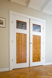 De kleur rood, groen en geel voor het houtwerk is niet altijd voor het hele interieur toegepast. De kleuren worden ook in combinatie gebruikt, zij het met de consequentie dat bijvoorbeeld deur en deurpost in dezelfde kleur zijn.